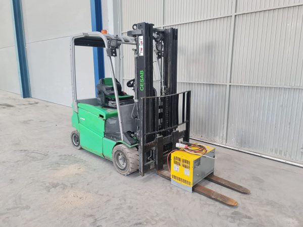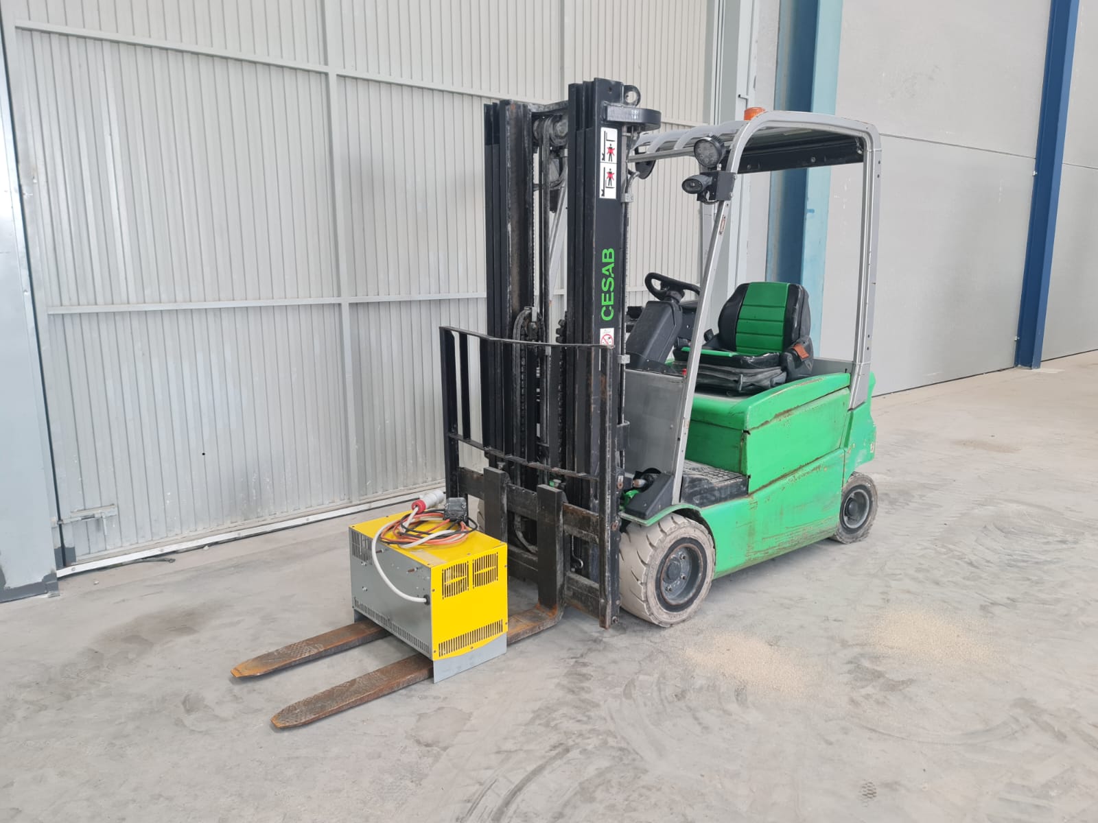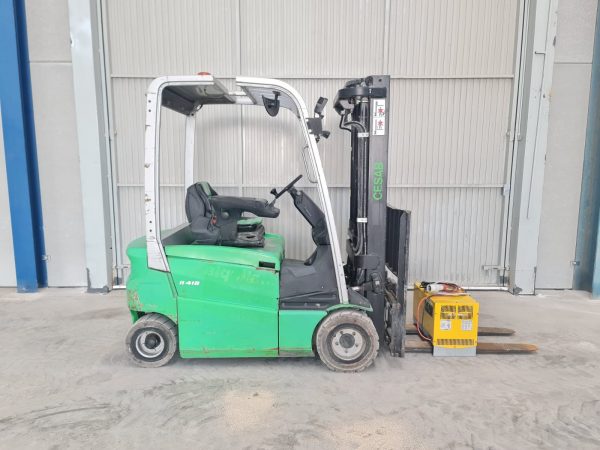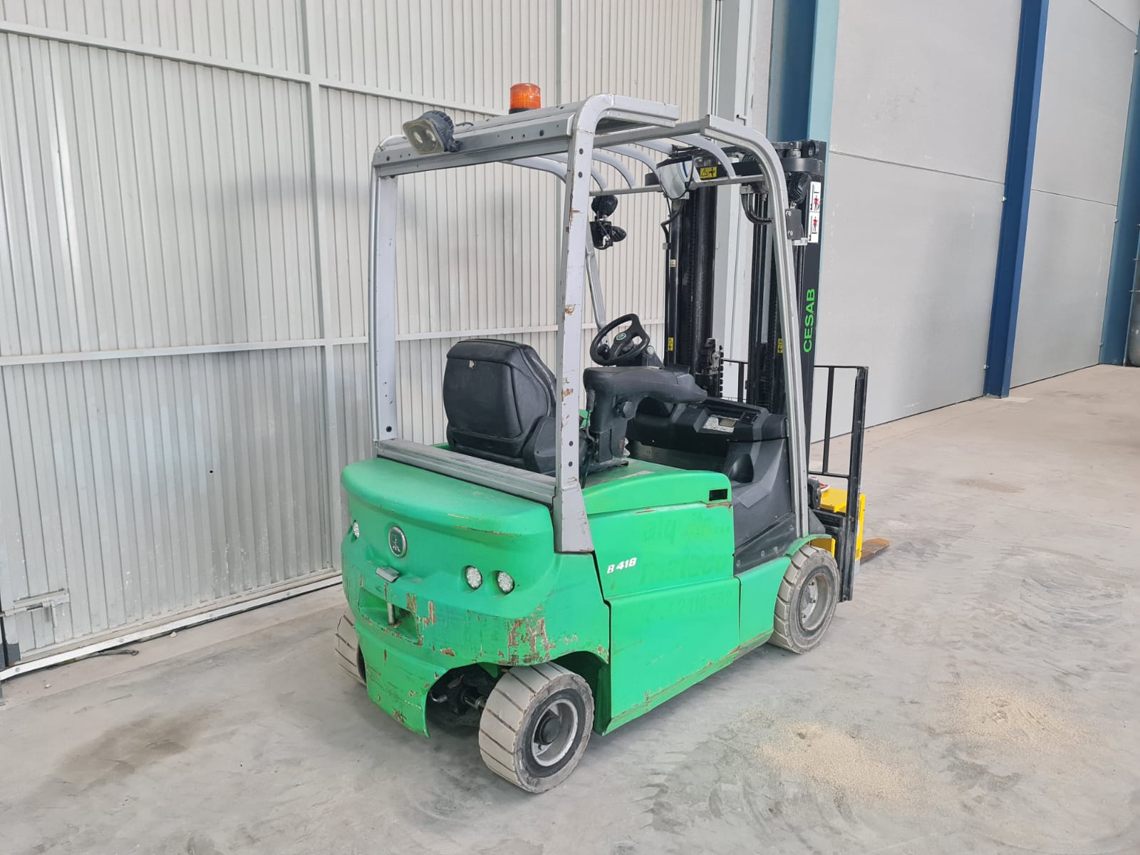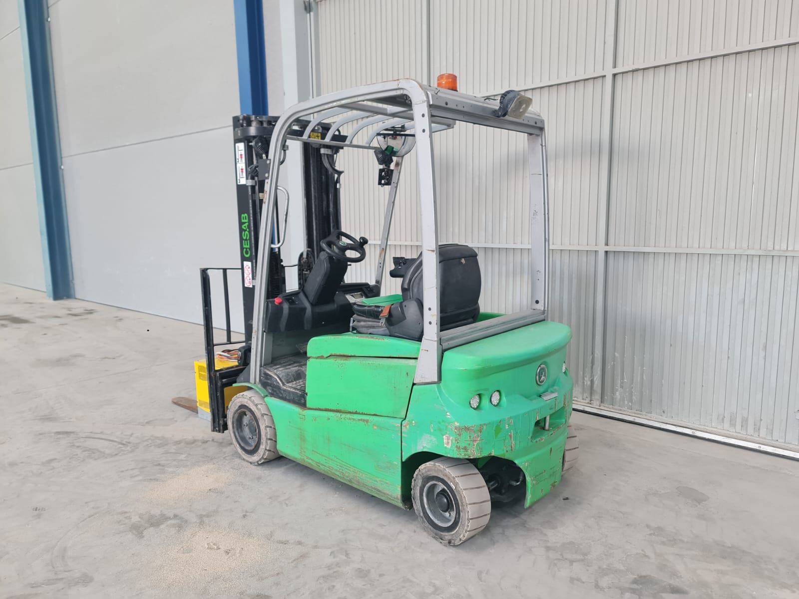 Carretilla elevadora eléctrica de la Marca CESAB-B418 con capacidad de elevación de 1.800kg y alturas de trabajo máximo de 4.8mts; es ideal para trabajos en entornos industriales exigentes, ya que es robusta eficiente. Cuenta con cuatro ruedas que dan una estabilidad máxima, ideal para los que buscan potencia, precisión; dispone de pantalla digital multifunción que da información operativa, dispone de control de tracción y frenado regenerativo.