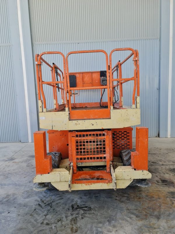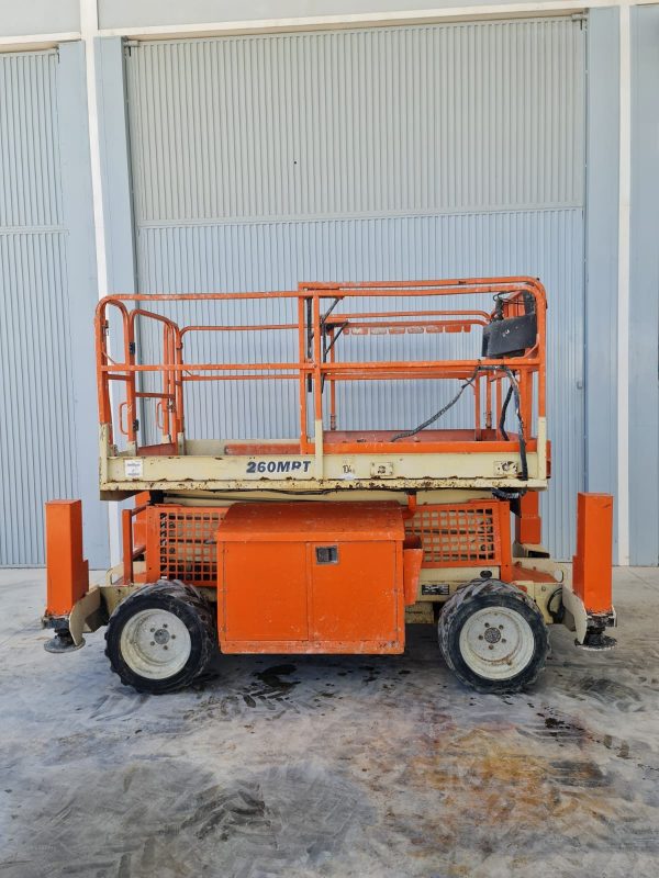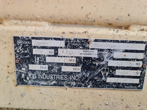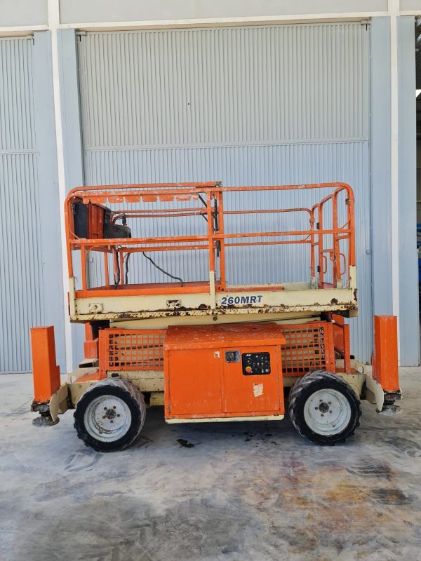 Plataforma Elevadora Marca JLG, modelo 260MRT. dispone de un bastidor estrecho de 1,75 m que permite trabajar en áreas de trabajo reducidas Plataforma de trabajo más grande con capacidad de 570 kg, gracias a la amplia cesta con extensión de serie;  que permite una mayor productividad. Tracción en las cuatro ruedas y pendiente superable del 35% de serie, que ofrecen una movilidad superior. Especial para moverse en cualquier tipo de terreno gracias a la tracción integral potenciada.