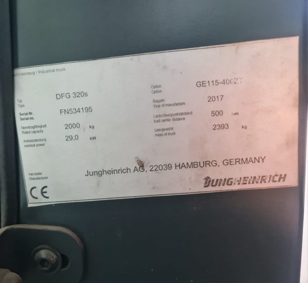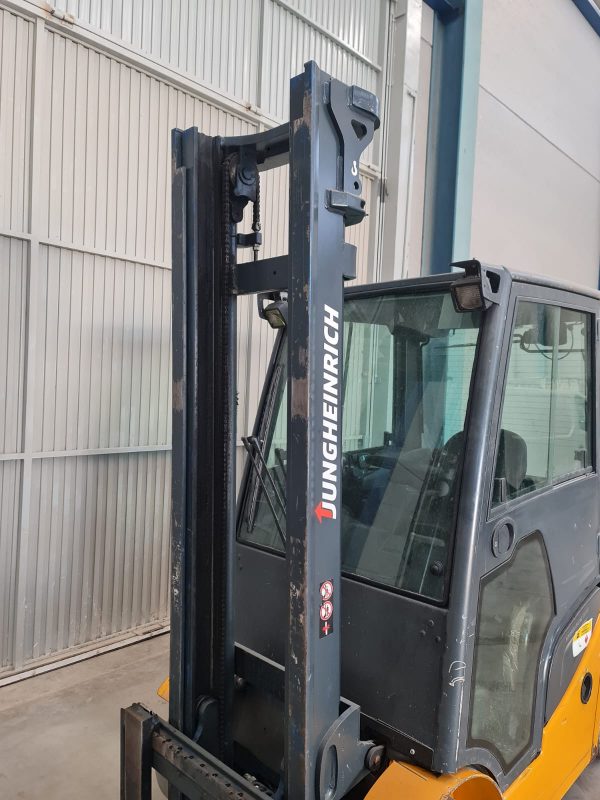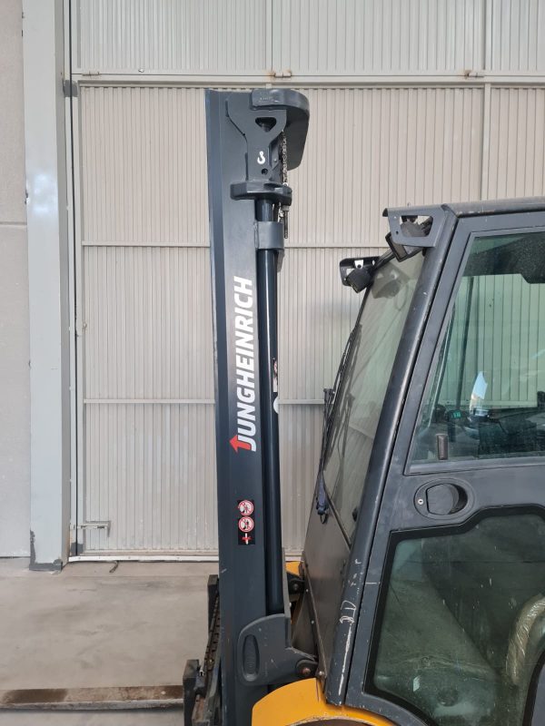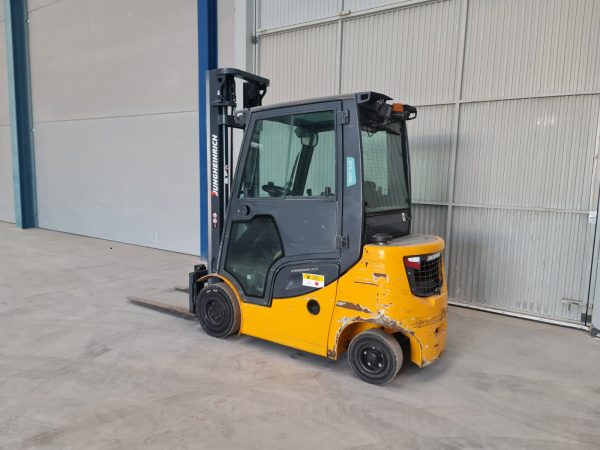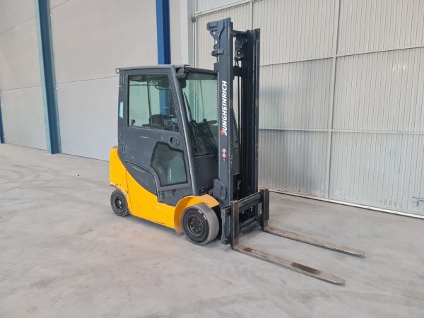 Es una carretilla de la prestigiosa marca Jungheinrich fabrica en el 2017, con cabina cerrada para el operario por lo que es especial para trabajos extremos tanto en interior como en exterior, tanto carga o descarga rápida en modo de marcha atrás, o en rampas o pendientes. Capacidad de carga de 2000kg y una elevación máxima de 4mts. Son de escaso mantenimiento y con reducidas emisiones de gases. Dispone de una pantalla y cinco programas de conducción seleccionables.