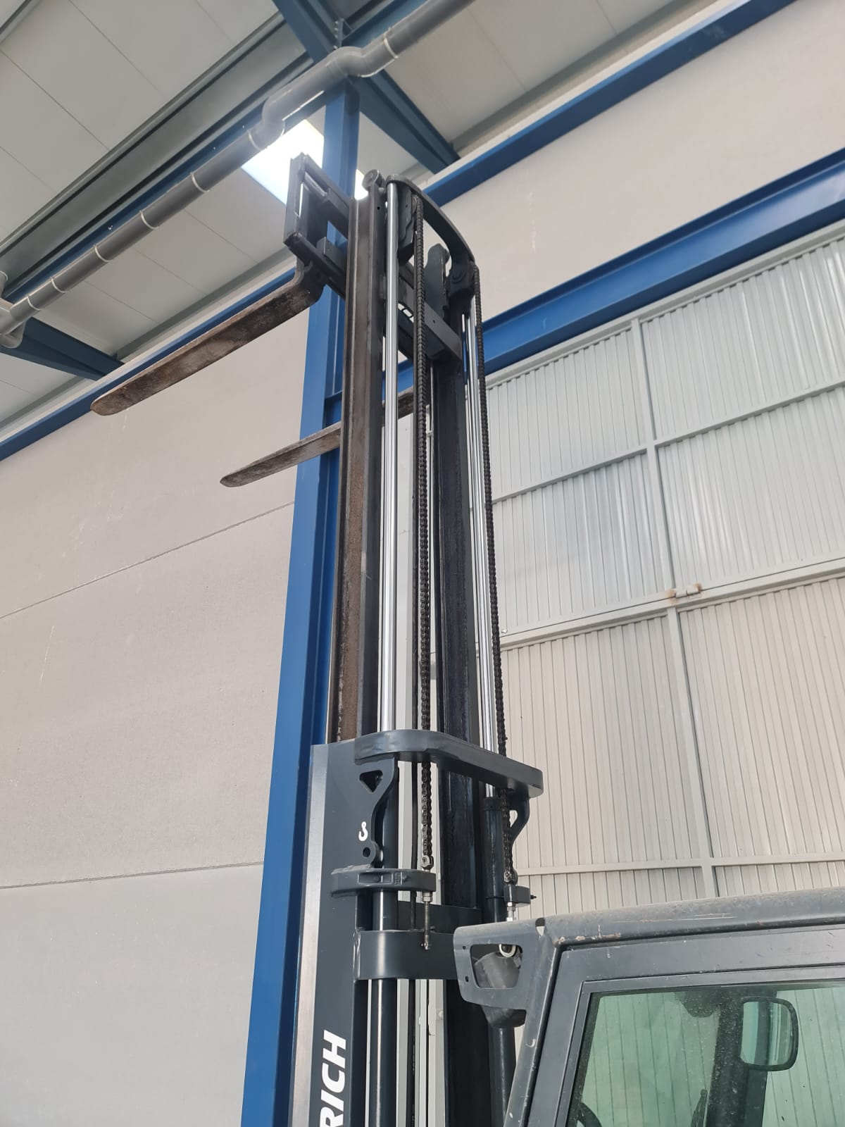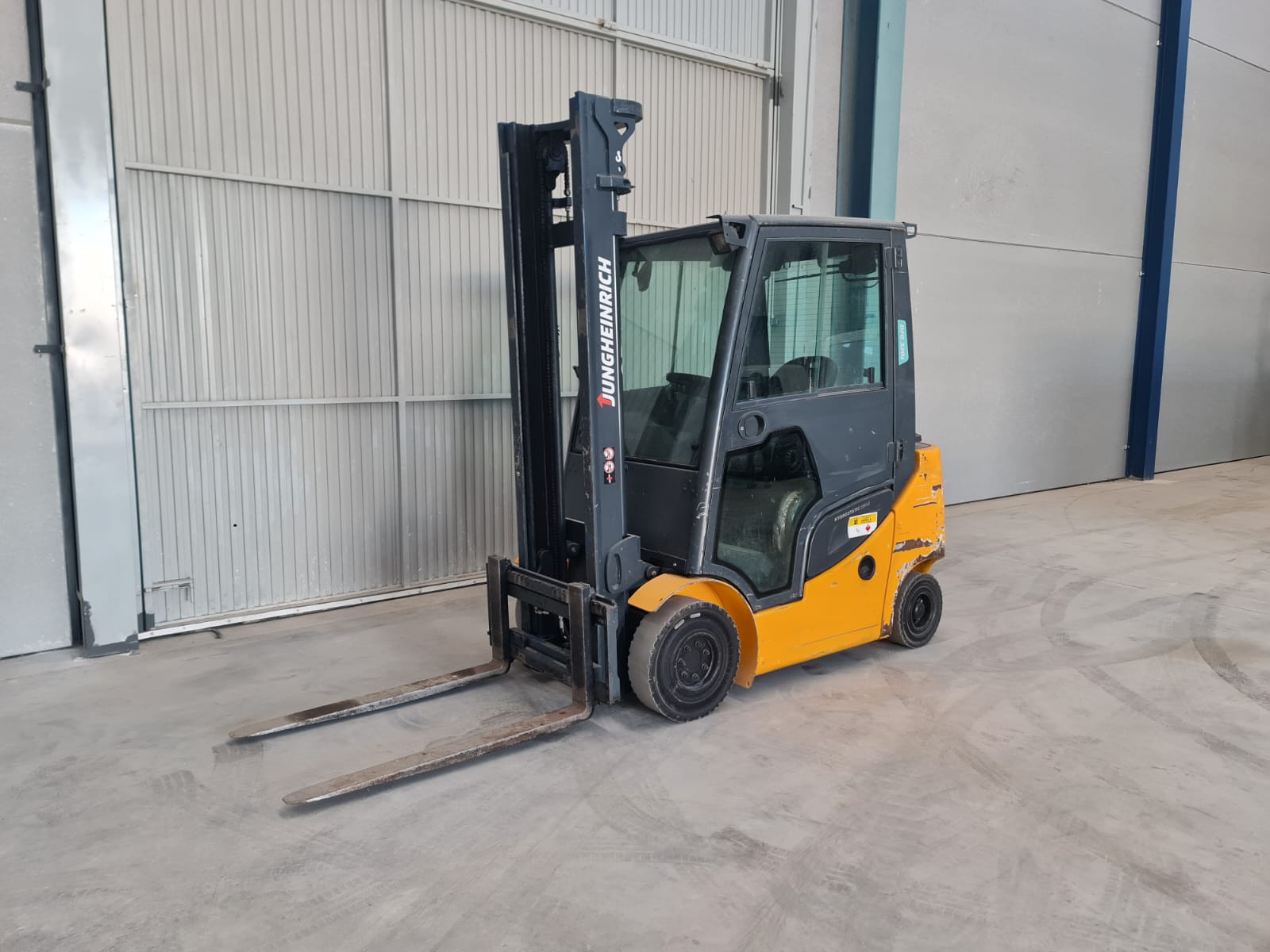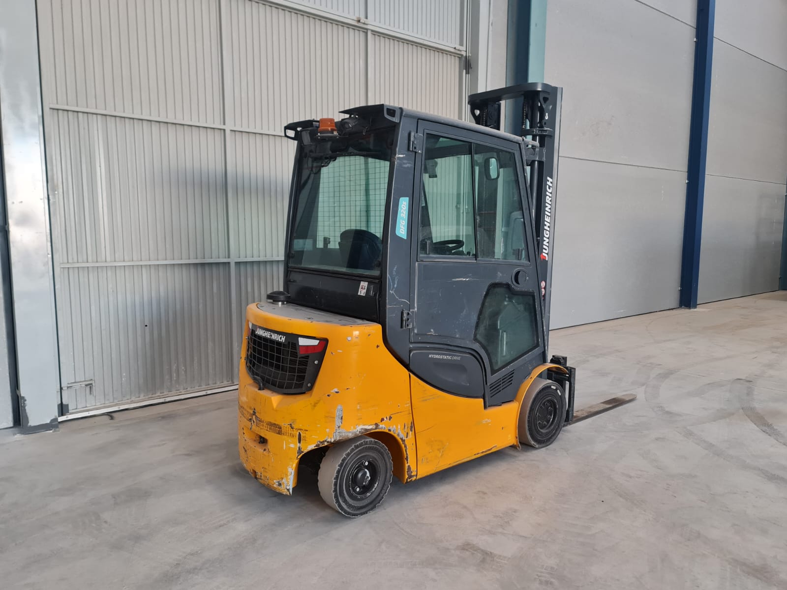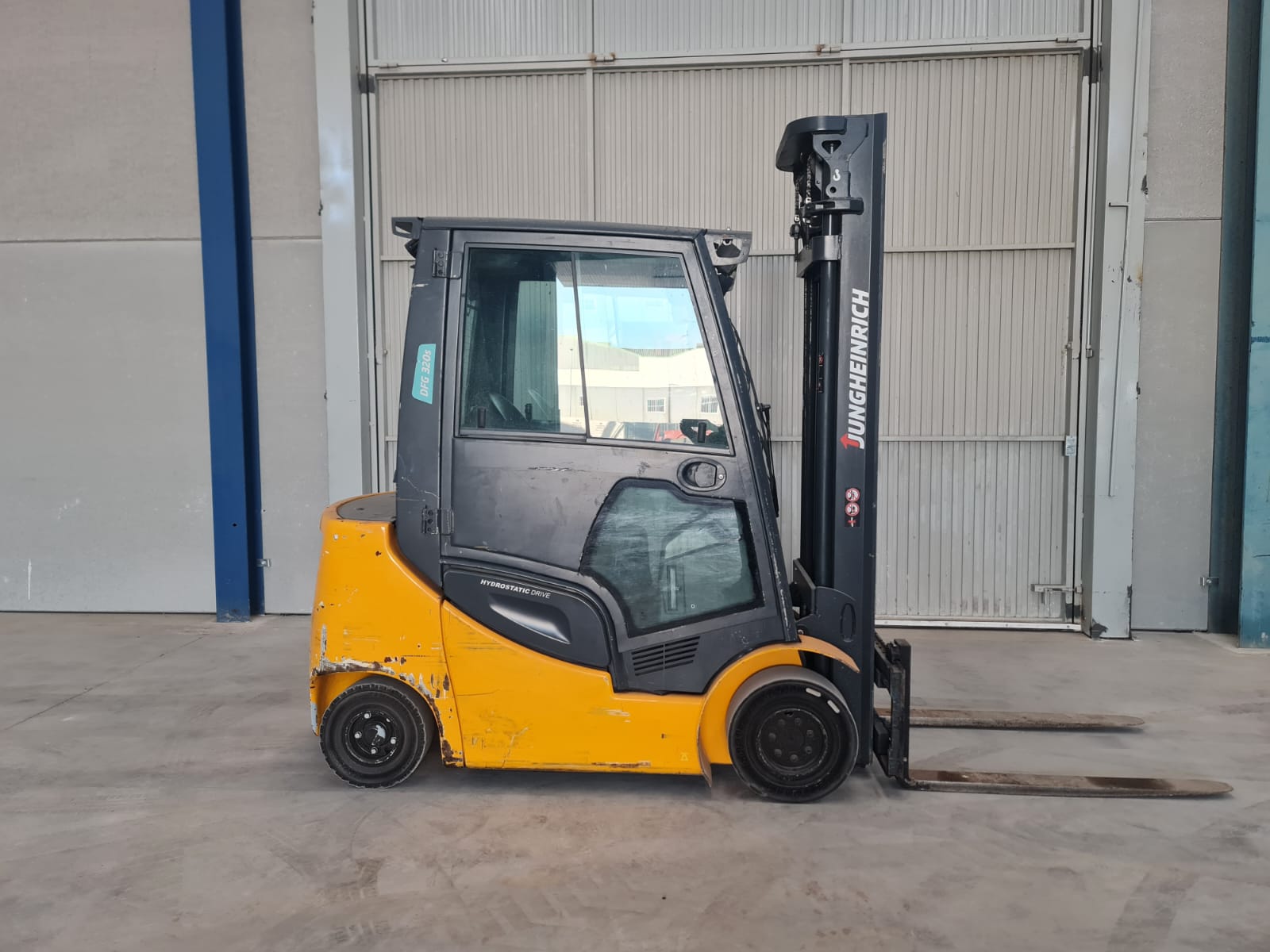 Es una carretilla de la prestigiosa marca Jungheinrich fabrica en el 2017, con cabina cerrada para el operario por lo que es especial para trabajos extremos tanto en interior como en exterior, tanto carga o descarga rápida en modo de marcha atrás, o en rampas o pendientes. Capacidad de carga de 2000kg y una elevación máxima de 4mts. Son de escaso mantenimiento y con reducidas emisiones de gases. Dispone de una pantalla y cinco programas de conducción seleccionables.