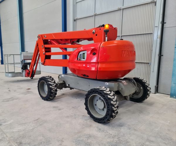 Plataforma elevadora de brazo articulado con motor diésel Manitou 160 ATJ con altura de trabajo de 16 metros. Ofrece un alcance lateral de 8,3 metros permitiendo los trabajos desde cualquier acceso. Ideal para trabajar en cualquier tipo de ambiente gracias a su chasis todoterreno.