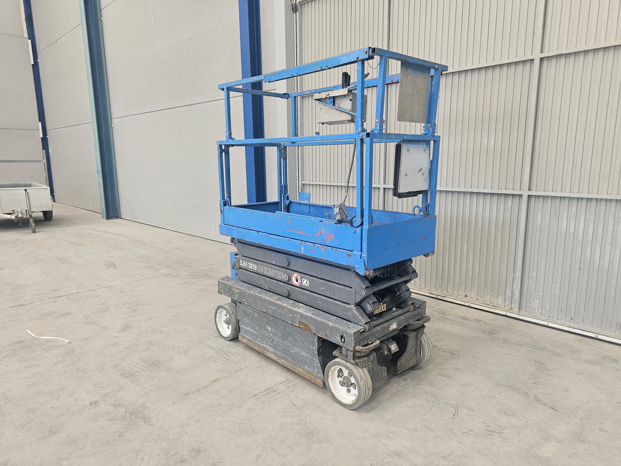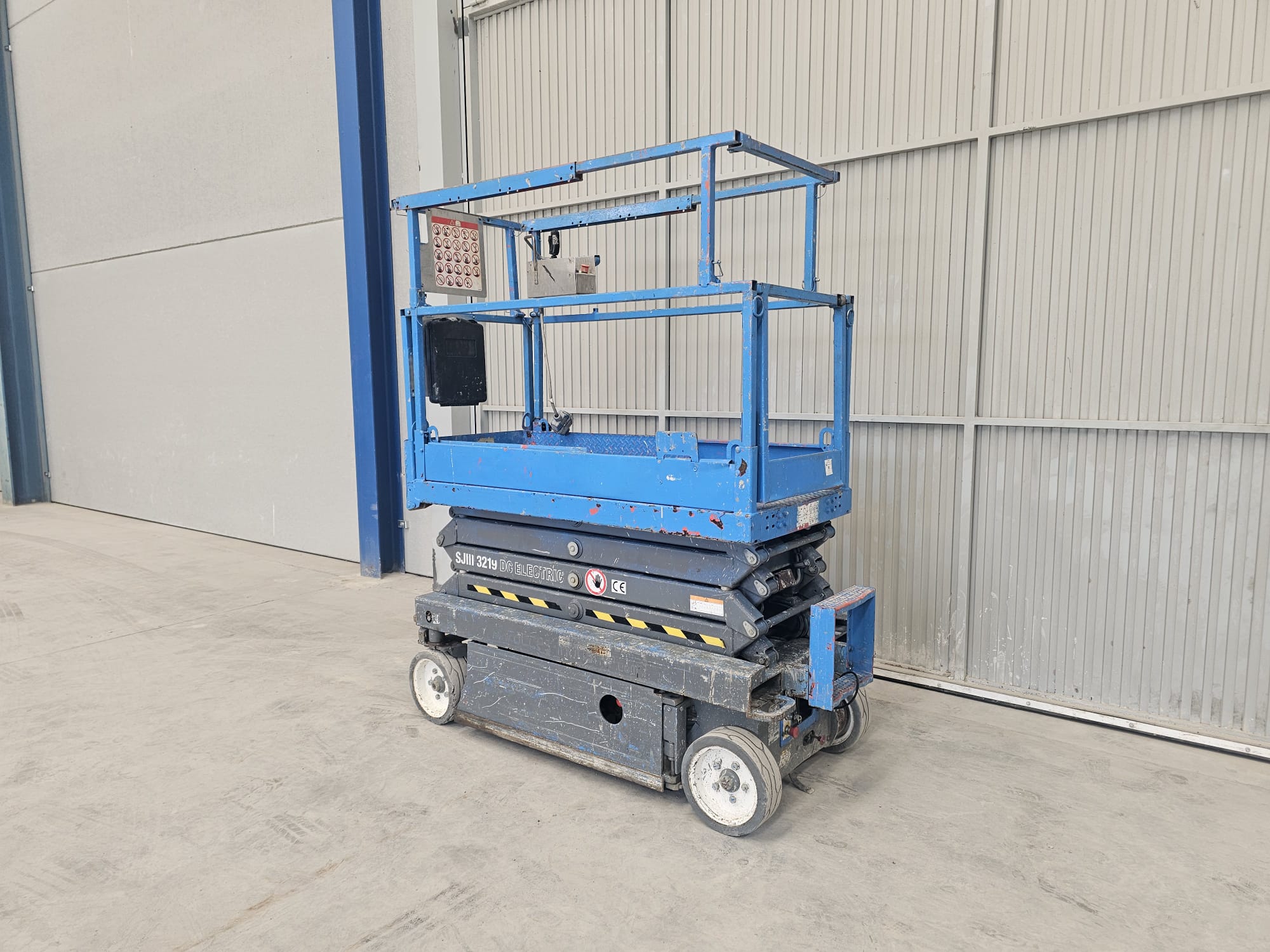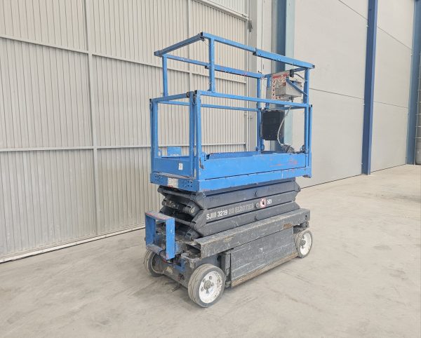 Plataforma tipo tijera eléctrica de la marca Skyjack modelo SJIII-3219, para alturas de trabajo de hasta 8mts, de reducidas dimensiones, especial para trabajos en interior; dispone de un sistema de control confiable, basado en un relé que incorpora un sistema que hace muy fácil detectar y solucionar los problemas y de fácil reparación, lo que significa que tiene un mantenimiento fácil y de bajos costes.